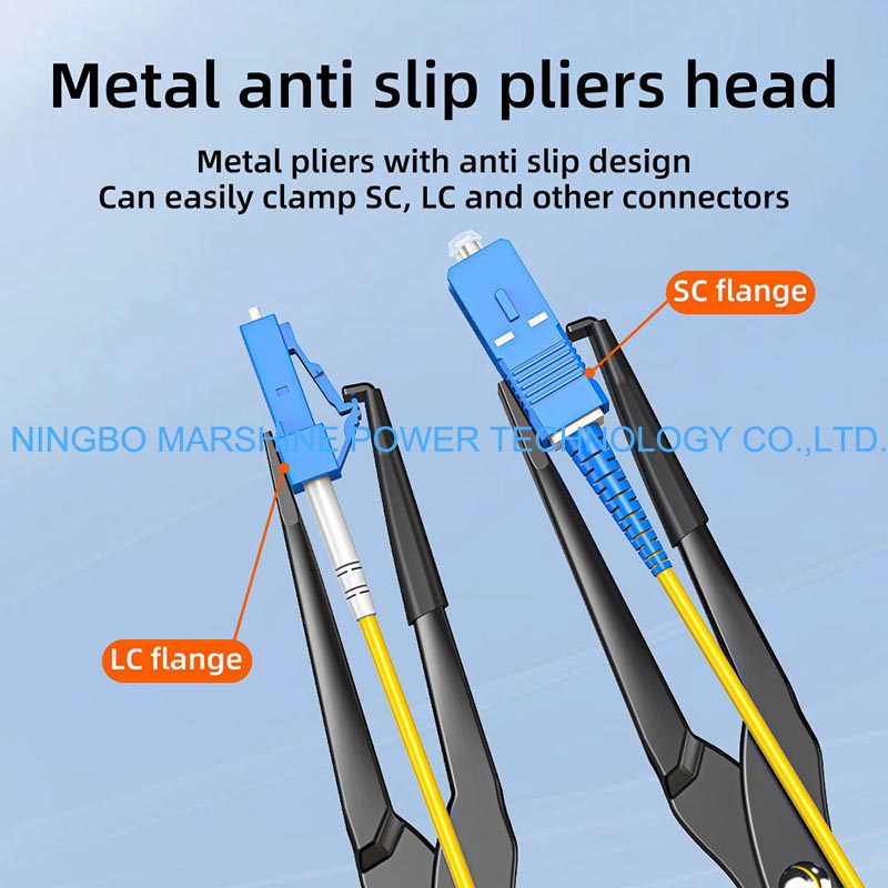 Our MARSHINE Anti-Slip Fiber Optic Connector Tool Flange Clamp Pliers pressurizes the force through the connector flange to deform the fore flanges, while the load is transferred to the other side that realizes the pressure balance and the correct positioning.