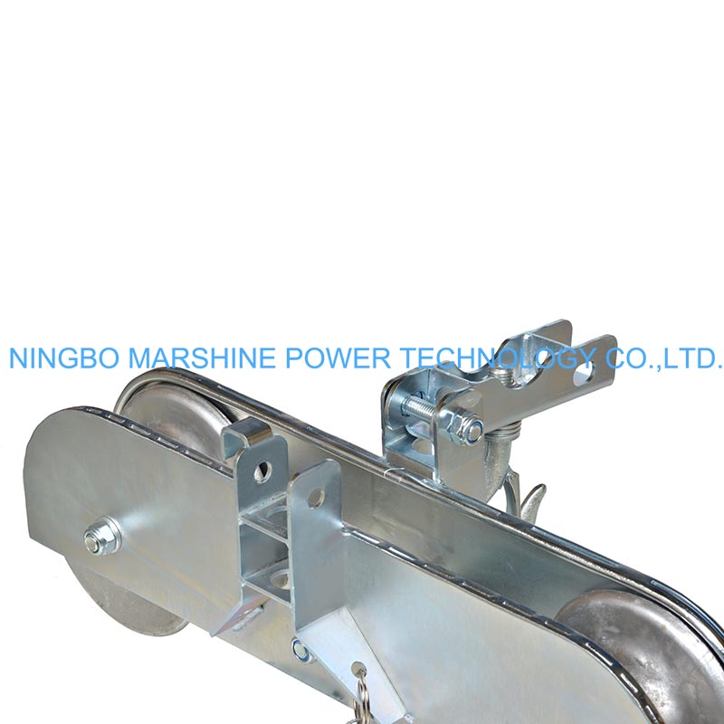 The MARSHINE Serial Type Steel Frame Cable Mounting Rollers is a professional cable line stringing tool used to lead and support conductors when pulling lines overhead. Combination of strong steel frame with serial (multiple) nylon rollers allow this tool to provide smooth cable run with minimal friction and protect the cable jacket. The roller's solid construction has a good bearing load and the nylon rollers operate quietly and stably. That’s why it is the perfect choice for power line construction jobs when speed, safety and cable care is a must.
