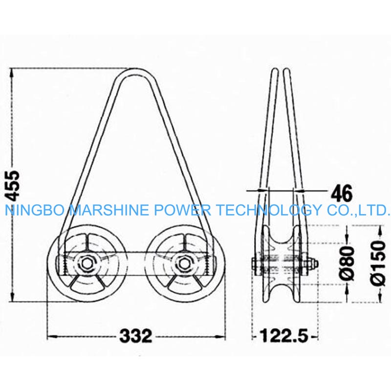 This MARSHINE Two-Shell Overhead Insulated Line Galvanized Steel Frame Mounting Roller is suitable for overhead line construction works, able to take very high working loads (typically about 10 KN).
